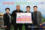 뉴스펀치 김길룡 기자 | 고성군은 12월 4일, 동해초등학교 이두만 회장과 동문들이 고향의 밝은 미래를 응원하는 뜻을 모아 고향사랑기부금 300만 원을 기탁했다고 밝혔다. 이번 기부는 동해초등학교 총동문회가 고향 고성의 지속 가능한 발전을 바라는 마음으로 이루어진 것으로, 고향사랑기부제 활성화에도 큰 힘이 될 것으로 기대된다. 이두만 회장은 “고향을 향한 애정과 동문들의 따뜻한 뜻을 모아 기부하게 됐다”라고 말했다. 김종춘 인구청년추진단장은 “2025년 연말을 앞두고, 고향을 향한 동문 여러분의 따뜻한 나눔과 응원에 깊이 감사드린다”라며, “기탁해 주신 기부금은 고성의 미래를 위한 소중한 자원으로, 군민 모두가 체감할 수 있는 곳에 정성껏 사용하겠다”라고 밝혔다. 한편, 고향사랑기부제는 개인이 주민등록상 주소지를 제외한 다른 지방자치단체에 연간 최대 2,000만 원까지 기부할 수 있는 제도이다. 10만 원까지는 전액 세액 공제가 적용되며, 10만 원 초과분에 대해서는 16.5%의 세액 공제를 받을 수 있다. 또한, 기부자는 기부금의 30% 이내에서 지역 특산품 등 답례품을 받을 수 있다