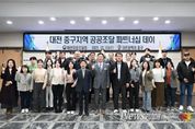 뉴스펀치 김길룡 기자 | 대전 중구는 10일 중구청 대회의실에서 대전지방조달청과 공동으로 ‘대전 중구지역 공공조달 파트너십 데이’를 개최했다고 밝혔다. 이번 행사는 지역 중소기업의 공공조달시장 진입 지원, 기업–수요기관 간 교류 확대, 조달제도 이해도 향상을 위해 마련됐으며, 중구 관내 기업과 중구청 관계자 등 30여 명이 참여했다. 행사에는 ▲조달기업 제품 소개 ▲조달등록 절차 안내 ▲조달청 지원제도 설명 등 기업들에게 실질적인 도움을 주는 프로그램이 진행됐으며, 특히, 중구 관내 조달기업과 중구청 수요부서를 1:1로 연결하는 맞춤형 매칭 상담이 운영돼 큰 관심을 모았다. 기업들은 자사의 조달등록 제품을 직접 소개하고, 수요부서 담당자들은 제품 성능·활용도·가격 등을 현장에서 즉시 확인하며 실제 구매 가능성을 논의하는 등 실무 중심의 상담이 이뤄졌다. 중구 관계자는 “지역 기업이 공공조달 시장에서 더욱 활발히 활동할 수 있도록 실질적인 지원을 지속하겠다”라며, “대전지방조달청과 협력해 기업의 조달시장 진입을 돕는 다양한 프로그램을 확대해 나가겠다”라고 말했다.