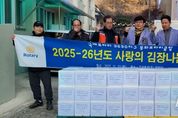뉴스펀치 김길룡 기자 | 봉화로타리클럽(회장 원준석)은 11월 25일 (사)봉화군종합자원봉사센터(이사장 김병남)에 김장김치 50박스(150kg)을 전달했다. 이번 기탁은 겨울철을 앞두고 지역 내 취약계층과 소외이웃을 지원하기 위하여 마련됐다. 이날 김장 나누기 봉사에서는 봉화로타리클럽 회원 40여명이 참여한 가운데 재료 손질부터 절임, 양념 버무리기, 포장까지 직접 진행했으며, 준비된 김장김치는 거동불편 어르신 등 돌봄이 필요한 가구에 전달될 예정이다. 원준석 봉화로타리클럽 회장은 “추운 겨울을 대비해 도움이 필요한 분들에게 작은 힘이 되고자 회원들과 정성을 모았으며, 앞으로도 지역과 함께하는 나눔활동을 이어가겠다”고 밝혔다. 김병남 (사)봉화군종합자원봉사센터 이사장은 “정성을 담아 김장을 준비해주신 봉화로타리클럽 회원들게 감사드리며, 도움이 필요한 이웃들에게 전달해 드리겠다”고 전했다.