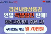 뉴스펀치 김길룡 기자 | 김천시는 오는 12월 한 달 동안 김천사랑상품권을 18% 특별 할인 판매한다고 28일 밝혔다. 시는 이번 특별 할인판매로 연말 소비 촉진을 비롯해 침체된 지역 상권 에 활력을 불어넣고, 지역경제 회복에도 긍정적인 영향을 미칠 것으로 기대하고 있다. 특히, 시는 12월 한 달 동안 진행되는 이번 특별 할인판매 기간에 한하여 개인 구매 한도를 월 70만 원으로 확대해 더 많은 시민이 혜택을 누릴 수 있도록 할 방침이다. 이번 연말 특별 할인판매로 연말 선물·장보기 등 가계 지출이 늘어나는 시기에 실질적인 가계 부담을 덜어주는 동시에 지역 내 소비 확대로 이어져 지역 상권 전반에 크게 도움이 될 전망이다. 다만, 예산 소진 시 특별 할인판매 기간 중이라도 조기 종료될 수 있으니, 혜택을 놓치지 않으려면 빠른 참여가 필요하다. 김천시 관계자는 “연말을 맞아 진행하는 김천사랑상품권 특별 할인판매가 상권 활성화와 지역경제에 실질적인 보탬이 되기를 바라며, 많은 시민이 혜택을 누리고, 조금 더 따뜻한 연말을 보내는 데 도움이 됐으면 한다.”라고 말했다.