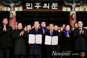 뉴스펀치 김용희 기자 | 강기정 광주광역시장은 30일 ‘전남광주통합특별시 설치를 위한 특별법안’이 국회에 발의된 것과 관련해 “부강한 광주전남을 만들기 위해 지난 4주 동안 쉼 없이 달려온 지금, 참으로 기쁘고 의미있는 성과를 이뤘다”며 “시민 여러분의 관심과 지지가 있었기에 가능했다”고 소회를 밝혔다. 강기정 시장은 “지난 1월 2일 광주전남 통합 추진을 공식 선언한 이후, 공청회와 간담회, 설명회를 통해 현장의 의견을 수렴해 입법을 준비해왔다”며 “그 결과 특별법안이 더불어민주당 당론으로 채택돼 국회에 발의됐다”고 설명했다. 강 시장은 다만 “특별법 발의 과정에서 국세의 지방세 전환 등 재정 특례조항이 포함되지 못했고, 해양수산부 이전과 같은 정부 부처 이전 요구도 법안에 담기지 못한 점은 아쉬움으로 남는다”고 밝혔다. 강 시장은 국회 심의과정에서 공공기관 2차 이전을 통한 많은 기관 유치와 지방재정 자립도를 높일 수 있는 재정 특례가 반드시 반영될 수 있도록 끝까지 노력하겠다고 강조했다. 이날 발의된 특별법은 국회 행정안전위원회 법안소위와 공청회, 행안위 전체회의를 거쳐 법제사법위원회 심사를