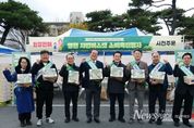 뉴스펀치 김길룡 기자 | 영천시는 샤인머스캣 가격 하락으로 어려움을 겪고 있는 지역 농가를 돕기 위해, 27일 시청 주차장에서 ‘영천 샤인머스캣 소비촉진행사’를 개최했다. 이번 행사는 영천시, 영천시의회, NH농협은행 영천시지부, 영천시조합공동사업법인이 공동 주최했으며, 공무원과 관내 유관기관이 솔선수범해 지역 농가와 상생하는 착한 소비문화를 확산하고자 마련됐다. 행사에 앞서 시청 직원과 관내 기관·단체를 대상으로 진행한 사전 예약판매에서는 샤인머스캣 1.5kg 1,034박스가 접수되며 큰 호응을 얻었다. 행사 당일에는 영천상공회의소 등 주요 기관과 시민들의 참여가 이어져, 준비된 현장판매 물량 700박스를 포함한 총 1,734박스가 모두 판매돼, 행사에 대한 시민들의 높은 관심을 확인할 수 있었다. 또한, NH농협은행 영천시지부의 우리쌀 떡 나눔행사와 대한한돈협회 영천시지부의 한돈 소비촉진행사도 함께 진행돼, 지역 농·축산물 소비 촉진의 의미를 더했다. 이와 함께 장학금 기탁식도 진행됐다. 영천농산물도매시장㈜과 영천시 농식품가공협의회가 각 500만원을 기탁해, 지역 인재 육성에 힘을 보탰다. 전국