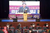 뉴스펀치 김길룡 기자 | 창원특례시는 22일 KBS창원홀에서 노사민정 대표와 시민 1,000여 명이 참석한 가운데 ‘산업안전문화 확산 공동결의대회’와 ‘2025 노사민정 희망드림 콘서트’를 성황리에 개최했다. 이번 행사는 창원시 노사민정협의회가 주최했으며, 산업안전문화 확산과 노동자·기업인 격려, 그리고 노사민정 간 상생협력 강화를 위해 마련되었다. 또한, 최근 산업현장에서 산업안전에 대한 관심이 높아짐에 따라, 노사민정이 함께 안전 실천 의지를 다지고 시민과 안전문화의 중요성을 공유할 수 있도록 산업안전문화 확산 공동결의대회와 희망드림 콘서트를 연계하여 진행했다. 행사는 창원지역예술단의 식전공연을 시작으로 ▲산재예방 홍보영상 상영 ▲‘안전은 생명’ 타올 퍼포먼스 ▲버튼대 점등 및 레이저 퍼포먼스 등 안전 실천 메시지를 담은 다양한 프로그램이 이어졌다. 이어 진행된 경품 추첨에서는 현장 분위기가 한층 고조되었으며, 박군, 원혁&이용식, 배진아, 송나윤 등 인기가수의 무대가 펼쳐져 시민들에게 큰 즐거움과 감동을 선사했다. 장금용 창원특례시장 권한대행은 “이번 행사는 시민과 함께 산업안전
