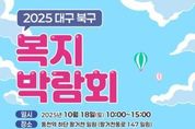 뉴스펀치 조평훈 기자 | 대구 북구청은 오는 10월 18일 오전 10시부터 오후 3시까지, 동천역 하단 팔거천 둔치에서 ‘행복을 잇는 복지, 모두의 북구’를 슬로건으로 '2025 북구 지역복지박람회'를 개최한다. 이번 박람회는 관내 사회복지기관, 단체, 공공기관, 주민이 함께 참여하는 민·관 협력형 복지 축제로, 구민이 직접 체험하고 즐기며 복지를 가까이에서 느낄 수 있는 장으로 마련됐다. 행사 당일에는 식전공연(맑은소리 하모니카 앙상블)을 시작으로 개회식 복지퍼포먼스, 각종 홍보·체험부스 40개가 운영되며, 에어바운스존·피크닉존·스탬프투어·미니게임·먹거리 부스 등 남녀노소 누구나 참여할 수 있는 다채로운 프로그램이 준비된다. 특히 23개 동 지역사회보장협의체의 특화사업 전시, 부키 룰루랄락 공연(노인복지관 합주단), IM뱅크 북구청지점의 커피차 음료 나눔 이벤트 등 지역사회가 함께 꾸미는 따뜻한 나눔의 장이 펼쳐질 예정이다. 배광식 북구청장은 “이번 복지박람회가 복지에 대한 주민들의 관심을 높이고, 민·관이 함께 소통하며 더 따뜻한 북구를 만들어가는 계기가 될 것.”이라며 “많은 주민들이 참여해