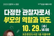 뉴스펀치 김길룡 기자 | 포항시립도서관은 10월 문화가 있는 날을 맞아 오는 29일 오후 2시, 포은중앙도서관 1층 어울마루에서 ‘인문학 in 포항’의 마지막 강연자로 이은경 작가를 초청해 강연을 진행한다. ‘인문학 in 포항’은 3월부터 10월까지 매달 마지막 주 수요일, 각 분야의 명사를 초청해 다양한 주제로 진행되는 포항시립도서관의 대표 인문 프로그램이다. 매회 높은 시민 호응을 얻으며 포항의 대표 문화강연으로 자리 잡았다. 이번 강연의 연사인 이은경 작가는 15년간 초등학교 교사로 재직했으며, 두 아들의 엄마로서 20년 가까이 쌓아온 교육 경험과 노하우를 바탕으로 부모와 자녀가 함께 성장하는 교육법을 전하고 있다. 지난 7년간 초등공부, 학교생활, 부모성장을 주제로 한 강연을 유튜브와 네이버 오디오 클립에 공유하며 초등 엄마들의 든든한 멘토가 됐다. 현재 ‘슬기로운 초등생활’이라는 이름의 유튜브 채널인 초등 교육 대표 콘텐츠의 운영자이며, 주요 저서로 ‘초등 자기주도 공부법’. ‘초등 매일 공부의 힘’. ‘나는 다정한 관찰자가 되기로 했다’ 등이 있다. 이번 강연