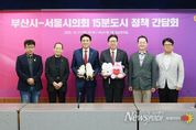 뉴스펀치 김완규 기자 | 서울특별시의회 도시계획균형위원회는 지난 21일 부산광역시청을 방문해 박형준 부산시장과 정책간담회를 갖고 도시계획, 지역 균형발전, 시민 중심 정책 추진 방향에 대해 심도 있는 대화를 나눴다. 이번 방문은 부산시가 추진 중인 ‘15분 도시’ 정책과 도시공간 혁신 사례를 살펴보고, 서울시 도시정책의 발전 방향에 접목할 실질적인 시사점을 얻기 위한 교류의 자리로 마련됐다. 김길영 위원장은 인사말을 통해 “부산은 ‘15분 도시’ 실현을 비롯해 지역의 균형발전과 도시공간의 혁신을 선도적으로 추진하고 있는 것으로 알고 있다”며, “특히 최근 2028 세계디자인수도(WDC) 선정이라는 쾌거는 시민 삶의 질 향상과 도시 경쟁력 제고를 위한 디자인적 노력이 국제적으로 인정받은 것이며 선정을 진심으로 축하드린다“고 밝혔다. 이어 ”시민의 삶터와 일터, 쉼터가 조화롭게 어우러지는 도시 구조를 만들어가고 있는 모습은 서울시의회가 추구하는 지속가능한 미래 도시계획의 방향과도 맞닿아 있다”고 말했다. 이후 위원회는 ‘15분도시 부산’ 브리핑을 청취하고, 앵커시설인 시청 내 ‘들락날락 어린이복합문화시