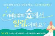 뉴스펀치 박세훈 기자 | 거제 치유의 숲이 2026년 새해를 맞아 ‘숲속 힐링 요가 & 싱잉볼 명상으로 내 마음챙김’을 운영한다. 거제 치유의 숲은 바쁜 일상 속에서 건강을 돌볼 여유가 부족한 시민들을 위해 이번 행사를 마련했다. 앞서 진행된 동일 프로그램은 사전 예약 오픈 3일 만에 전 회차가 조기 마감될 정도로 시민들의 높은 관심을 받았다. 참여자들은 “마음이 한결 가벼워졌다”, “나를 돌보는 법을 다시 배운 시간이었다”며 높은 만족도를 밝혔다. 거제 치유의 숲은 2026년 산림치유 프로그램이 본격 재개되는 3월 전까지 시민들의 치유 공백을 메우기 위해 이번 행사를 다시 운영한다. 행사는 이달 15일부터 다음 달 26일까지 매주 목요일 오후 1시와 3시, 하루 2회씩 총 7일간 진행된다. 회차당 운영 시간은 약 100분이며, 회차별 참여 인원은 15명이다. 거제시민 누구나 신청 가능하며 참가비는 무료로 진행된다. 다만 네이버 예약 시스템 운영상, 사전 예약 시 최소 결제 금액인 100원이 선결제되고 행사 당일 방문 시 전액 환불된다.