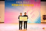 뉴스펀치 정홍균 기자 | 장수군은 9일 열린 ‘장수군 자원봉사자 한마음대회’에서 장수군자원봉사센터가 (재)장수군애향교육진흥재단에 장학금을 기탁했다고 밝혔다. 이번에 기탁된 성금은 2025년 장수군 자원봉사센터가 추진한 △아나바다 행복나눔장터 기부금 △행복한가게(중고의류매장) 운영 수익금으로, 약 240만 원이 재단에 전달됐다. 장수군자원봉사센터는 지역 청소년들의 안정적 성장과 교육 기회 확대에 보탬이 되고자 기탁을 결정했다. 이번 기탁은 지역사회가 직접 마련한 수익금을 다시 지역 학생들에게 환원하는 선순환 구조를 강화했다는 점에서 의미가 크다. 자원봉사자들이 일상 속에서 실천한 나눔 활동이 장학금으로 이어지며, 지역이 함께 청소년의 미래를 지지하는 공동체 기반을 한층 더 견고하게 만드는 계기가 됐다. 이민호 장수군자원봉사센터 이사장은 “지역을 위해 봉사해오신 자원봉사자들의 마음을 모아 학생들이 성장하는데 작은 보탬이 되길 바라며 앞으로도 지역 인재를 응원하겠다.”고 소감을 밝혔다. 최훈식 군수는 “해마다 지역 학생들을 위해 기부해주고 계신 장수군자원봉사센터의 따뜻한 나눔이