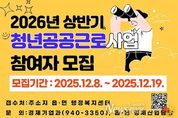 뉴스펀치 김길룡 기자 | 거창군은 2026년 상반기 청년 공공근로사업 참여자를 12월 8일부터 19일까지 모집한다. 청년 공공근로사업은 구직 중인 청년들에게 한시적인 일자리를 제공해 생활 안정과 취업 역량을 돕는 공공 일자리 사업이다. 신청 자격은 만18~34세 이하 관내 청년으로, 본인과 가족 합산 재산이 3억 원 이하이며 중위소득 60% 이하일 경우 신청할 수 있다. 모집인원은 36명이며, 신청은 주민등록상 주소지 읍면 행정복지센터에서 방문 접수로 진행된다. 자세한 사항은 거창군청 누리집 ‘입법/공고/고시’란에서 확인할 수 있다. 선발된 참여자는 각종 행정업무 보조 등 다양한 공공분야에서 근무하게 되는데, 참여 청년들은 현장에서 실무 경험을 쌓고 직무 역량을 강화할 수 있을 것으로 기대된다. 한편, 2026년 상반기 일반 공공근로사업과 지역공동체일자리사업은 1월 중에 별도로 참여자를 모집할 예정이며, 이를 통해 다양한 계층의 군민들에게 일자리 참여 기회가 제공될 예정이다.