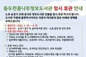 뉴스펀치 박상훈 기자 | 동두천시 도서문화사업소 꿈나무정보도서관은 노후 승강기 교체 공사 시행에 따라 오는 3월 20일부터 4월 19일까지 임시 휴관한다고 밝혔다. 꿈나무정보도서관은 2005년 개관 이후 약 20년이 경과한 시설로, 설치된 승강기의 내구연한 도래에 따라 안전사고를 예방하고 시설 안전성을 확보하기 위해 교체 공사를 실시한다. 이번 공사는 승강기 철거 및 신규 설치 과정에서 분진과 소음이 발생하고 공사 자재 적치로 인한 안전사고 우려가 있어 이용자 보호와 원활한 공사 진행을 위해 도서관 시설 전체와 도서 대출·열람 서비스를 임시 중단한다. 휴관 기간 동안 시민 불편을 최소화하기 위해 오르빛도서관, 동두천시립도서관 등 공공도서관 2곳, 남산모루 작은도서관과 종합운동장 지혜의 등대 등 작은도서관 2곳, 스마트도서관을 대체 이용 시설로 안내하고 관련 내용을 적극 홍보할 계획이다. 도서관 관계자는 “이번 휴관은 도서관 이용자의 안전 확보와 이동 편의 증진을 위한 불가피한 조치”라며 “다소 불편하시더라도 시민 여러분의 많은 이해와 협조를 부탁드린다”라고 말했다.