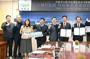 뉴스펀치 김길룡 기자 | 거창군과 한국농어촌공사 거창·함양지사는 지난 11월 6일 구인모 거창군수, 정명석 한국농어촌공사 거창·함양지사장, 청년·여성농업인 대표들이 참석한 가운데 ‘거창군 스마트농업육성지구 조성사업’ 추진을 위한 위·수탁 협약식을 개최했다. 올해 10월 행정안전부 중앙투자심사 통과로 총사업비 200억 원(국비50%, 도비15%, 군비35%) 규모로 추진되는 ‘거창군 스마트농업 육성지구 조성사업’은 거창읍 대평리 일원 총 12ha 부지에 청년농, 승계농을 위한 임대형 스마트팜 단지를 구축하고, 생산-유통-교육-연구 기능을 연계한 복합형 스마트농업 기반을 조성하는 사업이다. 이번 위·수탁 협약은 ‘거창군 스마트농업 육성지구 조성사업’의 효율적인 사업 진행을 위해 체결하게 됐으며, 이번 협약으로 거창군은 사업의 총괄 관리와 행정 지원을 담당하고, 농어촌공사 거창·함양지사는 실시설계, 공사 시행, 준공, 시설 인계인수 등의 역할을 일괄 수행하게 된다. 사업이 완료되면 청년농업인들이 입주하여 첨단 스마트농업 기술을 활용한 고부가가치 농업을 실현하게 되며, 지역 농업의 경쟁력 강화와 미래농업 기반조성에