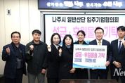 뉴스펀치 김길룡 기자 | 전라남도 나주시는 지난 3일 나주 일반산단 입주기업협의회가 연말연시를 맞아 지역 내 취약계층 지원을 위해 ‘희망 2026 나눔 캠페인 성금’ 300만 원과 자체 생산한 식료품 960만 원 상당 등 총 1260만 원을 기탁했다고 밝혔다. 이번 기탁은 일반산단 입주기업들이 경기침체 속에서도 지역사회 나눔에 동참하자는 뜻을 모아 추진된 것으로 식품 후원은 일반산단 내 10개 업체가 생산한 제품들로 구성돼 지역기업의 특색을 살린 후원이라는 점에서 의미를 더했다. 이날 나주시청 소회의실에서 열린 기탁식에는 윤병태 나주시장과 한윤경 입주기업협의회 회장, 나상채 사무국장 등 협의회 임원진이 참석해 나눔의 뜻을 함께했다. 한윤경 회장은 “협의회는 평소에도 지역 나눔 활동에 꾸준히 참여해 왔다”며 “연말을 맞아 기업들의 마음을 모아 마련한 기탁품이 어려운 이웃들에게 따뜻한 보탬이 되길 바란다”고 말했다. 윤병태 나주시장은 “일반산단은 나주 경제의 든든한 중심축이며 입주기업들의 나눔 실천은 지역사회에 큰 힘이 된다”며 “성금과 더불어 자체 생산 식품까지 후원해 주신 협의회에 깊이 감사드린다”