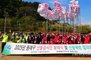 뉴스펀치 김길룡 기자 | 부산 동래구는 지난 5일 동래읍성역사관 원형광장에서‘2025년 동래구 산불감시단 발대식 및 산불예방 결의대회’를 개최하고 산불감시 체제를 본격화했다. 이날 발대식에는 산불감시원, 산불전문예방진화대, 관계 공무원 및 금강공원사업소 관계자 등 산불방지 인력 80여 명이 참석했다. 산불감시단 대표의 결의문 낭독을 통해 참가자들은 “단 한 건의 산불도 발생하지 않도록 맡은 지역을 책임감 있게 지키겠다”라고 다짐했다. 동래구는 이번 발대식에 앞서 지난 10월부터 산불방지 대책 본부를 조기 가동하고 주요 등산로 주변 풀베기, 낙엽 및 잡목 제거 등 산불 방화선 구축 작업을 실시하는 등‘산불 없는 동래구’실현을 위한 대응 체제에 이미 돌입한 상태다. 장준용 동래구청장은 “최근 금정산 국립공원이 전국 최초 도심형 국립공원으로 지정되면서 산림 이용객이 크게 늘어날 것으로 예상된다”라며 “이에 따라 산불 발생 위험도 커질 수 있어, 이번 발대식을 계기로 더욱 철저한 산불 감시 활동을 통해 주민과 함께 안전한 산림을 지켜나가겠다”라고 말했다.