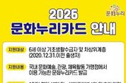 뉴스펀치 박상훈 기자 | 정부 정책에 따라 2026년부터 통합문화이용권(문화누리카드)과 청년문화예술패스 제도가 개편된다. 이에 따라 양주시는 개편 기준에 맞춰 지역대상자를 대상으로 해당 사업을 확대 시행한다고 밝혔다. 통합문화이용권(문화누리카드)은 6세 이상 기초생활수급자와 차상위계층을 대상으로 문화·여행·체육 활동을 지원하는 사업으로, 2026년에는 지원 인원이 16,386명으로 전년 대비 1,687명 증가한다. 또한 1인당 지원 금액도 기존 14만 원에서 15만 원으로 1만 원 인상된다. 특히 청소년(13~18세)과 생애전환기(60~64세) 대상자는 1만 원이 추가 지원돼 총 16만 원을 지원받게 된다. 청년층의 문화 향유 기회를 넓히기 위한 청년문화예술패스도 지원 대상이 확대된다. 2026년 지원 인원은 1,645명으로 전년 대비 727명 증가하며, 지원 연령 역시 기존 19세에서 19~20세로 확대된다. 통합문화이용권(문화누리카드)은 2월 2일부터 누리집 또는 각 읍면동 행정복지센터를 방문해 신청 가능하며, 자세한 사항은 문화누리카드 고객지원센터로 문의하면 된다. 청년문화예술패스