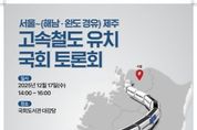 뉴스펀치 김길룡 기자 | 해남군은 오늘 17일 국회도서관 대강당에서 해남과 완도를 경유해 제주까지 연결되는‘서울~(해남·완도 경유) 제주 고속철도 유치 국회토론회’를 개최한다. 이번 토론회는 지역구 의원인 박지원 의원을 비롯한 해남 출신인 민홍철·민병덕·민형배 의원과 완도 출신의 허종식·손명수 의원이 공동 주최하며, 해남군과 완도군이 주관한다. 토론회는 서울~제주간 고속철도의 당위성을 설명하고 국회 차원에서 대국민 홍보를 통한 분위기 확산으로 제5차철도망 구축계획 반영을 위해 마련됐다. 서울~제주 고속철도 건설사업은 총사업비 27조원이 투입되는 초대형 국가 프로젝트다. 제주국제공항은 기상이변으로 매년 1,500여 건의 항공기 결항이 발생하고 있어, 오래전부터 이를 대체할 새로운 교통망 구축 필요성이 제기되어 왔다. 그러나 그동안 막대한 비용과 제주도의 반대 등으로 국가계획에 포함되지 못한 상황이다. 해남군은 제5차 국가철도망 구축계획 수립을 앞두고, 지난해부터 고속철도 유치를 위해 TF팀을 구성하고 국토교통부, 국가철도공단, 한국교통연구원 등 관계기관을 수차례 방문하며 사업의 필요성을 적극 건의해