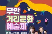 뉴스펀치 김길룡 기자 | 전남 무안군은 오는 24일 남악 중앙공원 일원에서 무안거리문화예술제를 개최한다. 무안거리문화예술제는 ‘문화 캔버스 – 도시, 예술로 물들다’ 라는 주제로 기존의 음악 공연 중심 거리예술에서 벗어나 다양한 분야의 지역예술가와 군민이 함께 어우러지는 참여형 문화예술제로 마련됐다. 일상 속 거리 공간을 예술로 채워 군민들에게 색다른 문화 향유 기회를 제공하는 것이 이번 행사의 가장 큰 특징이다. ▲무안군립국악원과 무안국악협회가 선보이는 ‘국악한마당’을 시작으로 ▲관내 청소년이 꾸미는 ‘꿈나무 콘서트’ ▲어린이들을 위한 ‘책 읽어주는 산타할머니’ ▲가족 단위 관람객이 함께 즐길 수 있는 ‘밖으로 나온 영화관’ 등 남녀노소 모두가 즐길 수 있는 프로그램으로 풍성하게 구성됐다. 또한 가수 경서, 정재욱과 뮤지컬 가수 루이스초이, 박소연 등이 출연하는 뮤직콘서트가 펼쳐져 연말 분위기를 한층 고조시킬 예정이다. 그 밖에도 관내 작가들과 함께하는 컵·접시 만들기, 크리스마스 리스 만들기, 캘리그라피 달력만들기, 솟대 만들기 등 다양한 체험 프로그램이 운영되며, 목포대학교 미술학과 학생들과