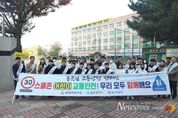 뉴스펀치 김길룡 기자 | 울산광역시교육청은 6일 오전 8시에 울주군 울주명지초등학교 앞 어린이보호구역에서 ‘민·관·경이 함께하는 등굣길 교통안전 홍보 활동(캠페인)’을 펼쳤다. 이번 홍보 활동은 지역사회 협력으로 어린이보호구역 내 교통사고를 예방하고, 학생이 안심하고 학교에 다닐 수 있는 교통안전 문화를 확산하고자 마련됐다. 이날 행사에는 천창수 교육감을 비롯해 김종훈 울산광역시의회 의원, 울산시청, 울주군청, 울산울주경찰서, 강남교육지원청 관계자와 울주명지초등학교 학생과 교직원 등 50여 명이 함께했다. 참여자들은 어깨띠를 두르고 학교 정문에서 출발해 인근 횡단보도와 아파트 단지 주변을 돌며 교통안전 홍보 활동을 벌였다. 무인단속카메라, 신호기, 보도 안전울타리 등 보호구역 내 안전시설을 점검하고, 등굣길 학생들에게 교통안전 홍보 스티커가 부착된 구급함 밴드 세트와 교통안전 안내문을 나눠줬다. 현장에서는 학생들에게 ‘어린이 안전 수칙 일이삼사(일단 멈춤, 이쪽저쪽 살피기, 삼 초 동안 주의, 사고 예방)’ 등의 보행 수칙을 알리고, 시민들에게는 ‘안전속도 5030’, ‘어린이보호구역