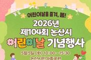 뉴스펀치 이현승 기자 | 아이들을 위한 특별한 하루, 웃음과 즐거움이 넘치는 축제가 논산에서 펼쳐진다. 논산시는‘제104회 어린이날’을 맞아 논산시민가족공원 일원에서 ‘2026 어린이날 큰잔치’를 연다. 이번 행사는 5월 5일 오전 10시부터 오후 3시 30분까지 진행되며, 기념식은 오전 10시 30분에 시작된다. 우천 시에는 전천후육상보조경기장에서 행사가 운영될 예정이다. 어린이 에어로빅과 엘피스키즈합창단의 공연으로 문을 여는 ‘어린이날 큰잔치’는 어린이 헌장 낭독과 모범어린이 표창, 어린이날 노래 제창, 특별 세레모니 등으로 이어지며 어린이날의 의미를 되새기는 시간을 마련한다. 이어지는 무대는 행사장을 찾은 어린이들이 주인공이 되어 마음껏 즐길 수 있도록 다채롭게 꾸며진다. 매직벌룬쇼, K-pop 댄스공연, 니니키즈 싱어롱쇼 등 눈높이에 맞춘 공연과 함께 키다리 삐에로의 풍선 나눔, 포토존도 함께 마련돼 특별한 추억을 선사한다. 행사장 일원에도 체험형 프로그램도 풍성하게 준비된다.‘나는야, 촉감왕!’, ‘핑퐁! 빙고게임’, ‘캘리그라피 그립톡’, ‘신기한