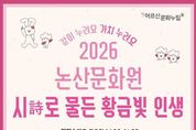 뉴스펀치 이현승 기자 | 논산문화원은 지역 어르신들의 삶의 이야기를 시(詩)로 표현하는 '시로 물든 황금빛 인생' 프로그램 참여자를 모집한다. 이번 프로그램은 시 창작과 감상, 시 낭송 활동을 통해 어르신들이 자신의 삶을 돌아보고 이를 문학적으로 표현함으로써 개인적·사회적 성취감을 느낄 수 있도록 기획했다. 특히 문화예술 향유 기회가 상대적으로 부족한 취약지역 어르신들에게 문화 참여 기회를 확대한다는 점에서 의미가 크다. 모집 대상은 논산시에 거주하는 60세 이상 어르신이며, 선착순 20명을 모집한다. 접수는 5월 11일 오전 9시부터 전화 또는 방문을 통해 가능하며, 참가비는 무료이다. 프로그램은 5월부터 11월까지 진행되며, 매주 화요일 오후 2시부터 4시까지 시 창작 교육 및 특강이 총 12회 운영된다. 개강은 5월 19일이다. 이와 함께 시 낭송 교육 6회, ‘시인을 찾아서’ 문화답사 1회, 시 낭송회 및 시화전 개최 등 다양한 프로그램이 마련되어 있다. 논산문화원 관계자는 “이번 사업은 문화체육관광부가 주최하는 한국문화원연합회 '취약지역 어르신 문화누