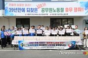뉴스펀치 이현승 기자 | 대전중구공무원노동조합은 29일 오전 10시 조합 사무실 앞에서 중구청장 및 노동조합 관계자가 함께 ‘39년 만에 되찾은 공무원 노동절 휴무 기념행사’를 개최하고, 63년 만에 노동절 명칭 복원과 120만 공무원, 교사 차별 해소를 경축하는 자리를 가졌다고 밝혔다. 이번 행사는 2026년부터 공무원과 교사에게도 5월 1일 노동절 휴무가 전면 적용된 것을 경축하고, 그 역사적 의미를 전 조합원들과 함께 나누기 위해 마련됐다. 이는 1987년 민주화 운동 이후 공무원의 노동권 보장 요구가 본격화된 지 약 39년 만에 이뤄낸 성과다. 그동안 노동절은 근로기준법상 유급휴일로 규정되어 공무원, 교사, 특수고용직 등은 적용 대상에서 제외되어 왔으나, 이번 관련 법 개정으로 약 120만 명에 달하는 이들이 겪어온 오랜 제도적 차별이 해소됐으며, 공무원 역시 보편적 노동자로서의 지위를 인정받게 됐다. 중공노는 이날 기념식에서 전 조합원에게 ‘39년 만에 되찾은 공무원노동절 휴무 기념 수건’을 제공하며 역사적인 첫 공무원 노동절 휴무를 함께 축하했다. 이정만 위원장은 이번 노동절