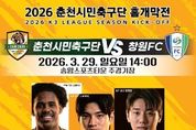 뉴스펀치 조평훈 기자 | 춘천시민축구단이 2026 시즌 K3리그 홈 개막전에서 ‘첫승’ 사냥에 나선다. 춘천시민축구단은 오는 29일 오후 2시 송암스포츠타운 주경기장에서 창원FC를 상대로 홈 개막전을 치른다. 이번 경기는 시즌 초반 흐름을 좌우할 중요한 경기로 춘천시민축구단은 홈 개막전에서 승리를 거두며 시즌의 첫 단추를 제대로 끼우겠다는 각오다. 시는 이번 개막전을 단순한 경기 개최를 넘어 시민이 함께 즐기는 축제형 스포츠 행사로 운영한다. 시는 관람객 2,000명을 목표로 온·오프라인 홍보를 단계적으로 추진하고 있다. 입장권은 일반 1만 원이며, 춘천시민은 50% 할인된 5,000원에 관람할 수 있다. 8세 미만까지는 무료로 입장할 수 있다. 경기 당일에는 다양한 시민 참여 프로그램이 마련된다. 경기 전에는 선수단 팬사인회와 설문 이벤트가 진행되며 경기장 일대에는 푸드트럭이 운영돼 관람객 편의를 높인다. 또한 시즌권과 유니폼 현장 판매가 이뤄지고, 경기 종료 후에는 스타일러와 아이패드 등 다양한 경품 추첨 이벤트도 진행될 예정이다. 시는 관람객 접근성과 편의도 함께 강화한다. 송암스포츠타운 일대