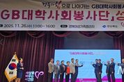 뉴스펀치 김길룡 기자 | 경상북도는 26일 경북여성가족플라자에서 ‘2025 GB(경북)대학사회봉사단 성과평가회’를 개최하고, 2025년 한 해 동안의 지역사회 곳곳에서 자원봉사로 활약한 GB대학사회봉사단의 성과를 공유하는 시간을 가졌다. 행사에는 GB대학사회봉사단 자원봉사자 300여 명과 김진현 경북도 안전행정실장, 최재혁 GB대학사회봉사단 단장(경북전문대학교 총장), 장유석 도종합자원봉사센터 이사장, 참여대학 총장을 비롯한 시군 자원봉사센터 관계자가 참석했다. 이날 행사에서는 2025년 모범적인 자원봉사활동으로 활약을 펼친 단원 61명은 경북도지사상, 경북도의장상, 경북교육감상, GB대학사회봉사단장상, 경상북도종합자원봉사센터 이사장상 등을 받았다. 이어서 GB대학사회봉사단과 시군 자원봉사 센터가 협업한 우수 자원봉사 사례발표 경진대회가 진행됐다. 이번 경진대회에는 구미대학교, 대경대학교, 선린대학교, 경북전문대학교, 경북보건대학교, 경북과학대학교 등 총 6개 대학이 참여해 올해 펼친 사업 성과와 우수 활동을 발표하며 실력을 겨루었다. 김진현 경상북도 안전행정실장은 “지역사회를 위해 시간과 열정을