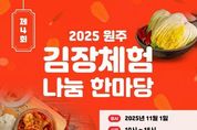 뉴스펀치 김길룡 기자 | (사)원주시농촌체험휴양마을협의회가 주관하는 2025년 제4회 김장체험·나눔 한마당 행사가 오는 11월 1일, 호저면 섬강매향골체험휴양마을에서 개최된다. 올해로 4회째를 맞은 이번 행사는 각 가정의 김장비용 부담을 덜고, 우리 지역에서 갓 수확한 신선한 재료로 건강한 김치를 직접 담그는 특별한 경험을 제공하기 위해 마련됐다. 참가비는 가족당 85,000원이다. 총 11㎏의 김장김치를 담그며, 그중 1㎏은 지역 내 어려운 이웃에 기부해 나눔의 의미를 더할 예정이다. 협의회 관계자는 “깊어지는 가을, 온 가족이 함께 김치를 만들며 즐거운 추억을 쌓고 우리 주변의 이웃과 따뜻한 마음을 나누는 뜻깊은 시간이 되길 바란다”라며, “시민 여러분의 많은 관심과 참여를 부탁드린다”라고 말했다.