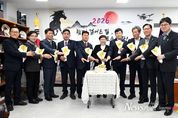 뉴스펀치 박세훈 기자 | 남해군의회는 7일 의장실에서 10명의 전 의원이 참여한 가운데 2026년 시무식 겸 첫 정례 의원간담회를 열고, 새해 의정활동의 출발을 알렸다. 이날 시무식은 의원 및 직원 표창을 시작으로, 기념 영상 시청, 떡케이크 커팅 등의 순으로 진행됐다. 수상자는 총 4명으로, 박종식 의원이 대한민국 지방의정 봉사상을, 장행복·장영자 의원은 경상남도 의정 봉사상 수상의 영예를 안았다. 의회사무과 김선예 주무관은 경상남도의회 의장 표창장을 받았다. 이어 제9대 남해군의회의 의정활동을 담은 기념 영상 ‘2026 함께 걸어온 길, 새로운 시작’을 시청하며 그간의 성과를 되짚고, 새해 의정 방향과 비전을 공유했다. 정영란 의장은 인사말에서 “2026년은 그동안의 의정 성과를 바탕으로 소통과 화합을 통해 군민의 삶에 한 걸음 더 다가가는 해가 되기를 바란다”며 “지난 한 해 동안 헌신해 주신 의원들과 직원들께 깊이 감사드린다”고 말했다. 시무식 이후 이어진 의원간담회에서는 △2026년 의회 회기일정 및 운영계획 △2025년 귀속 근로소득 연말정산 △지방의원 겸직 의무사항 △202