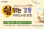 뉴스펀치 김완규 기자 | 강동구는 10월 11일부터 11월 2일까지 한 달간 파믹스가든(상일동 145-6)에서 주말 야외 도서관 '쉼 읽는 강동'을 운영한다고 밝혔다. ‘가을에 떠나는 책 여행’이라는 주제로 열리는 이번 행사에는 행사 기간 매주 토요일 ‘기억 쉼’, ‘일상 쉼’, ‘웰니스 쉼’, ‘함께 쉼’을 테마로 프로그램을 운영한다. 10월 11일(기억 쉼) 프로그램으로는 거북선 만들기 등의 체험과 ‘최강보 아티스트’의 비눗방울 마술공연이 진행된다. 특히, 이날 오전 10시에는 ‘큰별쌤’ 최태성 강사의 특강이 함께 진행되어 행사의 첫날을 빛낼 예정이다. 10월 18일(일상 쉼)에는 손수건 만들기 등의 체험과 그림책 독서와 원예 활동을 접목한 ‘그림책 가드닝’ 등의 프로그램이 운영된다. 10월 25일(웰니스 쉼)에는 자연을 탐구하는 프로그램이 진행된다. 꽃·나뭇잎 등으로 책갈피를 만드는 체험은 물론, 숲 해설가와 함께하는 자연 관찰 프로그램인 ‘그림책 숲 해설’이 진행된다. 11월 1일(함께 쉼)에는 샌드위치 만들기 프로그램을 비롯해 참여자가 직접 중고책을 플리마켓을 운영하는 참여형 프로그램들이 진행된다. 이