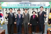 뉴스펀치 김길룡 기자 | 진주시의회 의원 연구단체 ‘진주시 ESG 활성화 연구회’는 21일 올해 연구활동을 마감하는 결과보고회를 열고, 연간 추진 성과와 향후 정책 제언을 공유했다고 밝혔다. 이날 시의회 2층 회의실에서 열린 보고회에는 최지원 대표의원을 비롯해 윤성관·임기향·김형석·최호연 의원 등 연구단체 소속 의원들이 참석했다. 이들은 세계적인 추세인 ESG(환경·사회·지배구조) 경영 요구 확산에 대응해 진주시 행정 전반에서의 ESG 관점 도입, 중소기업 지원 정책 플랫폼 구축 등의 필요성에 뜻을 모았다. 이를 위한 주요 정책 과제로는 ▲지속가능발전목표(SDGs)와 연계한 시정 철학 정립 ▲단계별 ESG 교육·진단·컨설팅 및 인센티브 지원체계 마련 ▲시·공공기관·대학·지원기관이 참여하는 민·관·학 거버넌스 구축 ▲예산·감사·입법 등 지방의회 주요 역할에서의 ESG 평가 관점 강화 등이 꼽혔다. 연구회는 올해 3월 출범 이래 11월까지 기후·탄소중립 정책 강화에 따른 지역 산업 변화와 중소기업의 ESG 대응 현황을 집중적으로 살폈다. 특히 전문가 세미나로 연구의 깊이를 더하면서 경기도의회, 한국ESG평가원, 서
