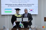 뉴스펀치 박세훈 기자 | 윤웅석 국기원장이 우즈베키스탄 국립체육대학교 명예박사 학위를 받았다. 지난 4월 13일 오전 11시(현지시간) 우즈베키스탄 국립체육대학교에서 라시드 마트카리모프(Matkarimov Rashid) 총장이 윤웅석 원장에게 명예박사 학위를 수여했다. 이번 명예박사 학위 수여는 윤웅석 원장이 태권도 발전을 위해 쏟은 지속적인 헌신과 더불어, 국기원과 우즈베키스탄 국립체육대학교 간의 긴밀한 협력 및 지원에 대한 감사의 의미로 마련됐다. 또한, 국기원은 2014년부터 백문종 해외 파견사범을 우즈베키스탄에 파견해 국립체육대학교뿐만 아니라 현지 태권도 저변 확대에 크게 기여하고 있다. 이날 학위 수여식이 끝난 후 윤웅석 원장은 라시드 마트카리모프 총장에게 명예 6단증을 수여했으며, 양 기관은 상호 협력 관계를 재확인하는 뜻깊은 시간을 가졌다. 윤웅석 원장은 “우즈베키스탄 국립체육대학교 명예박사 학위는 개인의 영광을 넘어 국기원과 태권도가 함께 이뤄낸 성과”라며 “앞으로도 우즈베키스탄을 비롯한 중앙아시아 지역과 협력을 더욱 강화하고, 태권도의 발전과 가치 확산을 위해 지속적으로