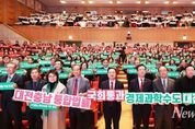 뉴스펀치 김길룡 기자 | 대전시는 12일 시청 대강당에서 대전광역시의회, 대전충남 행정통합 민관협의체(이하 민관협)와 공동으로 “대전충남 행정통합 설명회 및 시민 한마음 촉구대회”를 개최하고, 대전충남 행정통합 특별법안의 조속한 국회 심의․의결을 촉구했다. 이날 행사는 최근 대통령이 행정통합의 필요성을 공식 언급하면서 통합 논의가 새로운 전기를 맞은 가운데 마련됐으며, 약 600명의 시민이 참석해 추진상황을 공유하고 통합 의지를 결집했다. 이창기 민관협 공동위원장은 지난 10월 2일 특별법안 발의 이후 경과를 소개하며, 통합으로 기대되는 효과를 설명했다. 이 공동위원장은 통합 시 인구 360만 규모의 초광역 혁신 클러스터 형성, 광역교통․생활권 확장 등 실질적인 변화를 강조하며 “행정통합은 수도권 일극체제에 대응할 충청권의 경쟁력 확보 전략”이라고 밝혔다. 설명회 후에는 통합을 촉구하는 퍼포먼스가 진행됐다. 이장우 대전시장, 조원휘 대전시의회의장, 이창기 민관협 공동위원장, 남재동 대전사랑시민협의회장이 관객석에서 행정통합을 촉구하는 구호를 선창하고 시민이 후창하는 카드섹션을 펼쳤으며, 이어 무대에서