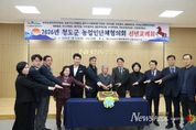 뉴스펀치 박세훈 기자 | 청도군농업인단체협의회는 1월 13일 청도농협농산물유통센터 2층 대회의실에서 2026년 신년교례회를 개최하고, 새해 청도 농업의 발전과 농업인 상생 협력을 다짐하는 뜻깊은 시간을 가졌다. 이날 행사에는 군내 15개 농업인 단체 100여 명이 참석해 새해 인사를 나누고 청도 농업의 미래 비전에 대해 의견을 공유했다. 신년교례회는 국민의례를 시작으로 ▲ 신년 인사 ▲ 내빈 축사 ▲ 시루떡 절단 ▲ 기념촬영 순으로 진행됐으며, 참석자들은 고령화·기후변화·농업경영비 상승 등 농업 현안에 공동 대응하고 농업 경쟁력 강화를 위해 힘을 모을 것을 다짐했다. 청도군 농업인단체협의회 회장 박희수는 “2026년 변화하는 농업 환경 속에서 농업인의 역할이 더욱 중요한 한 해가 될 것”이라며 “농업인단체 간 협력을 강화하고, 청도 농업의 지속가능한 발전을 위해 앞장서겠다”고 말했다. 김동기 청도군 부군수는 “청도 농업은 농업인 여러분의 땀과 노력으로 성장해왔다”며 “앞으로도 청도 지속적인 농업 발전과 농업인 소득 증대를 위해 행정 역량을 집중하겠다”고 밝혔다.