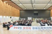 뉴스펀치 김길룡 기자 | 오산시장애인체육회는 지난 5일 오산오색문화체육센터 3층 소체육관에서 장애인 체육인의 한 해 활동을 돌아보고 선수와 관계자들의 노고를 격려하기 위한 ‘2025 오산시 장애인체육인의 밤’ 행사를 성황리에 개최했다. 이번 행사에는 이권재 오산시장(오산시장애인체육회장)을 비롯해 오산시의회 의장, 경기도의원, 오산시의원, 오산시장애인체육회 임원 등 내빈과 10개 가맹단체 임원 및 선수, 장애인 유관기관 관계자 등 약 350여 명이 참석했다. 행사는 (사)한국장애인부모회 오산시지회 ‘두빛나래’ 공연을 시작으로, 오산씨앗장애인학교 ‘위풍당당’ 밴드 공연, (사)전국장애인부모연대 경기도지부 오산시지회 ‘우당탕탕’ 팀의 댄스 공연 등 다양한 식전 공연으로 분위기를 고조시켰다. 이어 내빈 소개, 봉납식, 유공자 표창 및 감사패 수여, 환영사, 축사, 성과보고 영상 시청 순으로 진행됐다. 특히, ‘제15회 경기도장애인체육대회 2025 가평’ 감사패 수상과 ‘제19회 경기도장애인생활체육대회 2025 파주’에서 댄스스포츠 종합 2위, e-스포츠 종합 3위 성과를 기념하는 봉납식이 마련돼 큰 축하가 이어졌다.
