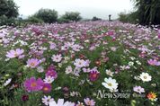뉴스펀치 탁상훈 기자 | 성남시 탄천 태평 습지생태원(수정구 태평동) 일대에 백만 송이의 코스모스 길이 펼쳐져 가을 정취를 전하고 있다. 성남시는 지난 8월 중순 4200㎡ 규모 부지에 파종한 코스모스 씨앗(50㎏)이 꽃을 피우고 있다고 10일 밝혔다. 이곳 코스모스 길은 분홍, 아이보리, 자주 등 다양한 색깔의 꽃물결을 이뤄 파란 가을하늘 속 아름다운 풍경을 연출하고 있다. 시는 시민들이 코스모스를 사진으로 남길 수 있도록 포토존 3곳을 만들어 놨다. 태평 습지생태원 코스모스는 오는 12일을 전후로 만개해 열흘간 절정을 이룰 전망이다. 코스모스 길이 펼쳐진 이곳 탄천엔 ‘자연의 보고’라 불리는 총 2만7600㎡ 규모의 습지생태원이 자리한다. 18개의 생태연못이 있어 창포, 애기부들, 줄, 붓꽃 등 수생식물을 볼 수 있다. 연못 주변을 따라 벌개미취, 수크령, 갈대 등 가을 식물들도 군락을 이루고 있어 계절의 변화를 오감으로 느낄 수 있다. 주변 산책로엔 잠자리, 나비, 메뚜기, 방아깨비 등 다양한 곤충도 관찰돼 가족 단위 방문객에게 인기다.