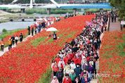 뉴스펀치 이현승 기자 | 충북 괴산군은 다음 달 22일부터 사흘간 괴산유기농엑스포광장과 동진천변 일대에서 ‘2026 괴산빨간맛페스티벌’을 열고 상춘객의 발걸음을 유혹한다고 28일 밝혔다. ‘붉은 설렘, 괴산에서’를 내건 올해 축제는 괴산만의 트렌디한 감각을 전면에 세웠다. 축제의 백미는 동진천변에 펼쳐진 거대한 붉은 봄꽃 군락이다. 왕복 3.3킬로미터(km) 구간을 따라 양귀비 10만 본, 작약 16만 본, 꽃잔디 8만 본을 가득 심고 끝없는 붉은 꽃물결을 빚어냈다. 축제의 여운을 잇고자 빨간꽃 산책길과 포토존은 행사가 끝난 뒤에도 5월 31일까지 연장 운영한다. 무대와 볼거리도 화려하게 꾸렸다. 주무대에는 국민밴드 YB(윤도현밴드), 경서, 나비 등 전 세대를 아우르는 인기 가수들이 출연해 축제장의 열기를 더할 예정이다. 특히, 야간에 펼쳐지는 드론쇼는 지난해 1,200대에서 올해 1,400대로 규모를 확대했다. 충북 최대 규모로 괴산의 밤하늘을 화려하게 수놓으며 관람객들에게 압도적인 시각적 경험을 선사할 것으로 기대된다. 방문객축제장 곳곳은 전 세대가 어우러