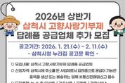 뉴스펀치 조평훈 기자 | 삼척시는 고향사랑기부제의 안정적인 운영과 지역경제 활성화를 위해 답례품 공급업체 추가 모집을 실시한다고 밝혔다. 신청 자격은 삼척시에 주소를 둔 사업체로서 답례품 공급이 가능한 품목을 생산 또는 배송할 수 있는 업체이며, 통신판매업 신고가 필수다. 모집 품목은 삼척시에서 생산·채취된 농·수·축·임산물과 가공식품, 삼척시 자원을 활용한 공예품, 관광·서비스 상품 등이다. 접수는 2월 9일부터 11일까지 삼척시청 본관 2층 총무과 고향사랑팀에서 방문 접수로 진행된다. 제출서류는 참가신청서, 공급제안서 등이며, 자세한 구비서류 목록은 삼척시 누리집을 참고하면 된다. 공급업체 선정은 서류심사와 필요시 현장평가를 거쳐 답례품선정위원회에서 최종 심의·결정하며, 결과는 2월 말 삼척시 누리집 공고와 함께 개별 통보할 예정이다. 시 관계자는 “지역 특산품과 관광자원을 활용한 다양한 답례품을 마련함으로써 기부자들의 선택 폭을 넓히고, 기부문화가 지역사회에 더욱 확산될 것으로 기대한다”며 “관심 있는 지역 업체들의 적극적인 참여를 바란다”고 말했다.