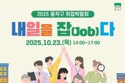 뉴스펀치 김완규 기자 | 동작구가 오는 23일 오후 2시 구청 신청사에서 2025 취업박람회 ‘내일을 잡(Job)다’를 개최한다고 밝혔다. 이번 박람회는 구직자의 취업 스트레스 해소와 역량 강화를 지원하기 위해 마련됐다. 관내 유한양행 등 다수의 우수기업과 유관기관이 참여해 채용 및 직업 탐색 기회를 제공할 예정이다. 특히, 올해는 축제 결합형 일자리박람회로서 신청사 곳곳에서 다양한 체험 부스와 부대행사가 함께 운영된다. 먼저, 4층 대강당에서는 관내 유한양행 등 20여 개의 참여기업이 ‘채용부스’를 설치해 구직자를 대상으로 현장 면접과 간접 채용을 진행한다. 또한 구청을 비롯해 동작취업지원센터, 서울관악고용복지+센터 등 유관기관에서 준비한 ‘홍보부스’에서는 취업·직업훈련·고용지원 정보를 제공한다. 이와 함께 4층 소회의실에는 △AI 인적성 검사 △취업타로 △퍼스널컬러 진단 △이력서 사진 촬영 등으로 구성된 ‘취업지원존’이 마련되며, 이곳에서는 이력서·자기소개서 1:1 컨설팅도 받을 수 있다. 1층 로비에는 △메이크업 아티스트 △아로마 향수 만들기 △네일아트 △캘리그라피 등