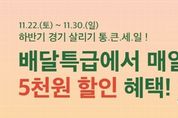 뉴스펀치 김길룡 기자 | 경기도 공공배달앱 배달특급이 2025년 하반기 경기살리기 ‘통 큰 세일’에 합류한다. 경기도주식회사는 오는 30일 일요일까지 배달특급 전체 회원을 대상으로 배달특급 입점 가맹점에서 사용할 수 있는 5천원 할인 쿠폰을 제공한다고 23일 밝혔다. 해당 프로모션은 배달특급 애플리케이션 내 상반 ‘통 큰 세일’ 배너를 통해 쿠폰을 내려받아 결제 단계에서 사용할 수 있다. 예산 소진 시까지 회원당 매일 1회 내려받아 사용 가능하다. 배달특급은 지난 상반기에도 경기도와 경기도시장상권진흥원이 추진한 ‘2025년 상반기 경기 살리기 통 큰 세일’에 참여한 바 있다. 당시 배달특급은 경기도 지역화폐가 연동되는 공공배달앱 3사(배달특급, 땡겨요, 먹깨비) 가운데 가장 먼저 할인 쿠폰을 소진시켰고, 가장 많은 30억 원의 거래액을 기록하며 소비자와 소상공인의 상생을 이끌어 낸 바 있다. 한편, 배달특급의 모든 이벤트는 해당 상단 배너 기능을 통해 확인 가능하며, 지역에 따라 할인 조건과 금액이 달라질 수 있어 사전 확인이 필요하다.