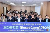 뉴스펀치 박상훈 기자 | 파주시는 2월 24일 운정행복센터 6층 (재)파주시청소년재단 파주시청소년상담복지센터에서 교육발전특구 사업의 일환인 ‘보다듬학교(Reset Camp)’ 현판식을 개최하고 본격적인 운영을 알렸다. 이날 행사에는 김경일 파주시장을 비롯해 박대성 파주시의회 의장, 원희복 파주시청소년재단 대표이사, 조규문 파주교육지원청 행정국장, 경기도의원 및 파주시의원, 관내 학교장, 유관기관 관계자 등 약 100여 명이 참석해 보다듬학교의 출발을 함께 축하했다. 행사는 앞서 진행된 운정청소년센터 개관식에 이어 간소하게 진행됐으며, 보다듬학교 추진 경과보고, 기념사 및 축사, 현판 제막식, 시설 라운딩 순으로 이어졌다. 최희진 평생교육과장은 경과보고를 통해 보다듬학교의 추진 배경과 운영 방향을 설명하며, “학교폭력 예방과 관계 회복, 정서 조절 역량 강화를 중심으로 한 공유학교 모델을 통해 청소년의 전인적 성장을 지원하겠다”고 밝혔다. 김경일 파주시장은 기념사에서 “보다듬학교는 단순한 프로그램이 아니라 청소년 한 사람, 한 사람의 회복과 재도약을 돕는 교육 안전망”이라며 “지역사회와 학교, 전문기