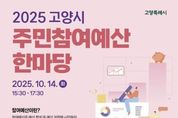 뉴스펀치 탁상훈 기자 | 고양특례시는 오는 10월 14일 오후 3시 30분, 일산호수공원 고양꽃전시관(북카페)에서 ‘2025년 고양특례시 주민참여예산 한마당’을 개최한다고 밝혔다. 주민참여예산제는 예산 과정에 시민이 직접 참여함으로써 지역의 주인 의식을 높이고 재정민주주의를 실현하는 중요한 제도다. 시는 지난해 7월부터 올해 6월 말까지 온오프라인을 통해 총 250건의 주민 제안사업을 접수받았다. 이후 소관 부서의 검토와 주민참여예산위원회의 심사를 거쳐 온라인 시민투표를 실시하고 그 결과를 이번 행사에서 공개할 예정이다. 현재 고양시청 누리집(홈페이지)에서는 2026년도 주민참여예산 제안사업에 대한 사전 온라인 시민투표(9.26.~10.8.)가 진행 중이다. 이번 행사에서는 2025년도 주민참여예산으로 반영돼 실제로 실행된 사업 중 우수 실행사례도 함께 소개된다. 주민참여예산의 의미를 시민들과 다시 공유하고, 향후 제도의 발전 방향을 함께 모색하는 자리가 될 예정이다. 행사에서 결정된 제안사업 우선순위는 오는 10월 중 ‘주민참여예산 조정협의회’심의를 거쳐 2026년도 고양시 예산안에
