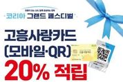 뉴스펀치 김길룡 기자 | 고흥군은 전국 대규모 할인 축제인 ‘코리아 그랜드 페스티벌’을 기념해 10월 29일부터 11월 9일까지 12일간 모바일 고흥사랑상품권 20% 적립 이벤트를 진행한다고 밝혔다. ‘코리아 그랜드 페스티벌’은 내수 회복을 위해 정부 10개 부처 합동 주관으로 유통업계와 소상공인 등 3만여 업체가 참여하는 국가 단위 대규모 소비축제로, 10월 29일부터 11월 9일까지 12일간 진행된다. 고흥군은 전국적으로 진행되는 코리아 그랜드 페스티벌에 발맞춰 지역 소비 및 상권 활성화를 위해 모바일 고흥사랑상품권 적립률을 5% 상향해 총 20% 특별 적립 이벤트를 마련했다. 행사 기간 모바일 고흥사랑상품권을 결제하면 결제금액의 20%를 적립할 수 있으며, 적립된 캐쉬백은 가맹점에서 일반 상품권과 동일하게 사용할 수 있다. 모바일 고흥사랑상품권은 ‘지역상품권 chak’ 앱을 통해 충전하며, 고흥사랑카드 또는 chak 어플 QR코드를 이용해 가맹점에서 사용할 수 있다. 군은 이번 20% 특별 적립 이벤트가 11월 6일부터 9일까지 4일간 진행되는 제5회 고흥유자축제의 성공에도 큰 도