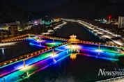 뉴스펀치 이현승 기자 | 연일 이어진 한파로 괴산군 성황천과 동진천이 얼어붙은 가운데, 두 하천을 잇는 에코브릿지의 경관조명이 얼음 위에 반영돼 겨울밤 수변에 이색적인 풍경을 연출하고 있다. 괴산읍 도심을 흐르는 성황천과 동진천 일대는 최근 강추위로 수면이 꽁꽁 얼어붙으면서, 두 하천을 연결하는 에코브릿지 하부에 설치된 다채로운 색감의 경관조명이 얼음 위로 선명하게 비쳐 고요한 겨울밤 속 색다른 장관을 만들어내고 있다. 얼어붙은 수면 위에 비친 조명은 마치 빛의 길이 펼쳐진 듯한 분위기를 자아낸다. 에코브릿지는 성황천과 동진천을 연결하는 친환경 보행 교량으로, 하천을 따라 형성된 산책 동선을 자연스럽게 이어주는 역할을 하고 있다. 낮에는 주민과 방문객들의 산책과 휴식 공간으로 활용되고 있으며, 밤에는 경관조명을 통해 도심 속 수변 야경 명소로 자리 잡고 있다. 특히 겨울철에는 얼음과 조명이 어우러진 독특한 풍경으로 사진 촬영 명소로도 주목받고 있다. 괴산군 관계자는 “성황천과 동진천을 잇는 에코브릿지가 겨울철 한파 속에서도 도심 수변의 색다른 볼거리를 제공하고 있다”며 “앞