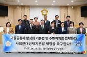 뉴스펀치 김길룡 기자 | 광산구의회가 21일 제301회 정례회 제1차 본회의에서 ‘마을공동체 활성화 기본법, 주민자치회 법제화, 사회연대경제기본법 제정 촉구 건의안’을 채택했다. 광산구의회는 조영임 의원(더불어민주당, 첨단1·2동)이 대표 발의한 건의안을 통해 “우리 사회는 물질적 풍요 속에서 공동체 해체, 사회적 고립이 심화되고 있다”며 “지역 문제와 불평등을 해결하기 위해서는 행정 중심의 개발 논리가 아닌 주민 스스로 공공의 가치를 만들어가는 풀뿌리 자치의 회복이 필요하다”고 강조했다. 이어 “마을은 민주주의의 출발점이자 주민이 일상에서 협력과 연대를 실천하는 삶의 학교지만, 마을공동체의 현행 제도는 사업 중심으로 분절되어 있고 법적 근거가 미비하다”고 지적했다. 또한 “주민자치회 역시 생활자치의 핵심으로, 주민이 직접 마을계획 수립과 예산 편성에 참여하는 제도적 권한이 보장돼야 한다”며 “주민자치회를 통해 지방분권의 완성과 생활민주주의를 실현할 수 있도록 법제화되어야 한다”고 설명했다. 아울러 “사회연대경제는 협동과 상생을 통한 사람 중심의 경제를 구현하는 새로운 대안”이라며 “사회연대경제기