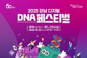 뉴스펀치 김완규 기자 | 꿈이 모이는 도시, 미래를 그리는 강남구가 오는 10월 22일 오전 9시부터 오후 5시까지 세텍(SETEC) 제1‧2전시실에서 ‘2025 강남 디지털 DNA(Dream New Area) 페스티벌’을 개최한다. 구는 2023년부터 ‘학교로 찾아가는 디지털 미래인재’ 교육 과정을 개발해 운영해 오고 있으며, 여기에 특수학교를 포함한 관내 61개 초·중학교가 참여하고 있다. 올해 상반기에는 42개교 학생 7,300여 명이 이 교육을 이수했다. 이번 페스티벌은 이러한 교육 성과를 공유하고, 학생들이 익힌 기술을 선보이며 미래 기술에 대한 관심을 확장할 기회로 기획됐다. 특히 올해는 개청 50주년을 기념해 프로그램 규모를 대폭 확대해 초·중학생 약 3,500명이 참여할 예정이다. 페스티벌은 크게 ▲AI 경진대회 ▲50주년 기념 AI 체험·전시존 ▲진로직업·미래기술‧평생학습 체험부스 ▲특별강연으로 구성됐다. AI 경진대회는 ‘상상과 기술이 만나는 곳, 2025 강남 디지털 미래인재 챌린지’라는 이름으로 개최되며, 초등학생을 대상으로 한 AI 자율주행차·드론대회와 중학생 대상의 AI 헤리티지 해커톤