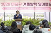 뉴스펀치 박상훈 기자 | 박강수 마포구청장은 1월 29일 오전 8시 30분, 마포구청 1층 어울림마당에서 열린 ‘2026 마포구 겨울방학 영어캠프 출정식’에 참석해 캠프에 참여하는 학생들을 격려하고 안전한 캠프 활동을 당부했다. 이날 출정식에는 영어캠프 참가 학생 72명과 학부모 등 관계자 총 110여 명이 함께했다. 이번 영어캠프는 1월 29일부터 30일까지 1박 2일 일정으로, 서울특별시교육청 학생교육원 글로벌문화·언어체험교육원에서 진행된다. 참가 학생들은 교육원에 머물며 원어민 교사와 함께하는 체험형 영어 수업과 문화·언어 프로그램에 참여하게 된다. 구는 서울시교육청과 협력해 합숙 운영에 필요한 생활지도와 안전관리 체계를 마련하고, 학생들이 안심하고 프로그램에 참여할 수 있도록 지원하고 있다. 박강수 마포구청장은 “여러분은 교실을 벗어나 영어와 문화를 직접 체험하는 특별한 여정을 떠나게 된다”라며, “영어가 서툴더라도 부끄러워하지 말고 적극적으로 소통하며 도전하길 바란다”고 학생들을 응원했다. 이어 “무엇보다 단체생활을 하는 만큼, 안전 수칙을 잘 지키고 서로 배려하며