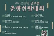 [20260202112252-88250]뉴스펀치 최영남 기자 | 남원시는 제96회 춘향제를 맞아 ‘글로벌 춘향선발대회’ 참가자를 2월 2일부터 3월 27일까지 모집한다. 글로벌 춘향선발대회는 춘향의 가치와 정신을 세계에 알리고, 국적과 언어, 문화의 경계를 넘어 현대적 감각으로 재해석한 춘향의 매력을 선보이기 위해 마련된 춘향제 대표 프로그램이다. 특히 제96회 춘향제에서는 ‘춘향의 멋, 세계를 매혹시키다’를 주제로 글로벌 문화 아이콘으로서의 춘향을 조명하고, 참가 대상과 무대를 국제적으로 확대한다. 이번 대회는 단순한 선발을 넘어 문화 교류형 콘텐츠로 운영해 지역 축제를 넘어 세계인이 함께하는 글로벌 문화 플랫폼으로 도약할 계획이다. 참가 자격은 대한민국 국적자뿐만 아니라 해외 국적자도 지원 가능하며, 자세한 모집 요강은 남원시 누리집과 춘향제 공식 홈페이지에서 확인할 수 있다. 대회에서는 전통적 아름다움은 물론 춘향의 정신과 가치에 대한 이해, 글로벌 감각과 소통 역량 등을 종합적으로 평가할 예정이다. 서류심사와 예선심사를 거쳐 선발된 본선 진출자는 4월 30일 열리는