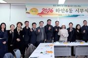 뉴스펀치 박상훈 기자 | 광명시 하안4동 행정복지센터는 지난 5일 센터 2층 회의실에서 2026년 병오년(丙午年) 새해를 맞아 유관단체장과 마을연대활동가 등 30여 명이 참석한 가운데 시무식을 열었다. 이날 시무식은 지난해 적극적인 시정과 동정 활동으로 지역 발전에 헌신한 유관단체장과 활동가들에게 감사의 마음을 전하기 위해 마련했다. 참석자들은 새해 주요 업무 추진에 대한 의지를 다지며 하안4동의 도약과 화합을 기원하는 시간을 가졌다. 이재희 동장은 “유관단체의 적극적인 협조로 지난해 내실 있는 성장을 이뤘다”며 “올해는 소외된 이웃을 더욱 세심하게 살피고 주민 행복을 최우선으로 노력하겠다”고 말했다. 김성동 하안4동 단체장협의회장은 “2026년 새해에도 모든 주민이 행복한 하안4동을 만들기 위해 유관단체들이 한마음으로 협력하고 이웃사랑 실천에 앞장서겠다”고 말했다. 한편, 하안4동 행정복지센터는 시무식 종료 후 참석자들과 떡국을 함께 나누며 새해 인사를 전하고 소통과 화합의 의미를 더했다.