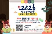 뉴스펀치 박상훈 기자 | 양주시가 운영하는 양주시 농특산물 온라인 쇼핑몰 양주농부마켓에서 다가오는 설 명절을 맞아 고객들에게 특별한 혜택을 제공하고자 설맞이 할인 이벤트를 진행한다. 이번 이벤트는 1월 26일부터 2월 10일까지 진행하고, 기간 내 양주농부마켓 로그인 시 20% 할인쿠폰 2장이 자동 지급된다. 단, 예산 소진 시 조기 종료될 수 있다. 양주시 관계자는 “설 명절을 앞두고 시민들이 부담없이 풍성한 명절을 준비할 수 있도록 이번 이벤트를 마련했다”며 “양주시에서 생산한 품질 좋은 농축산물과 가공품 등 다양한 상품과 선물세트가 준비돼 있으니 많은 관심과 구매를 부탁드린다”고 말했다.