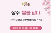 뉴스펀치 박세훈 기자 | 상주시는 봄을 맞아 시민들에게 신선한 농특산물 먹거리를 합리적인 가격에 제공하고, 지역 농가와 생산자의 판로 확대를 지원하기 위해 ‘상주, 봄을 담다’봄 농특산물 먹거리 온라인몰 할인 기획전을 운영한다. 이번 기획전은 2026년 3월 9일부터 3월 31일까지 진행되며, 상주시 공식 온라인몰인 명실상주몰을 통해 나물류, 버섯류 등 봄철 농특산물 먹거리를 20% 할인된 가격으로 판매한다. 이번 행사는 최근 물가 상승으로 인한 소비자 부담을 완화하고 지역 농특산물 소비를 촉진하기 위해 마련됐다. 상주시는 이번 기획전을 통해 지역 생산자와 소비자 간 상생을 도모하고, 시민들이 제철 농특산물을 보다 손쉽게 접하며 계절의 변화를 식탁에서 체감할 수 있도록 지원할 계획이다. 상주시 관계자는 “이번 ‘상주, 봄을 담다’온라인 기획전을 통해 시민 여러분께서 봄 제철 농특산물을 부담 없이 즐기시고, 지역 농가와 생산자에게도 실질적인 도움이 되기를 기대한다”며 “앞으로도 상주시는 지역 농특산물 소비 활성화와 지역 경제 활력 제고를 위한 다양한 지원 정책을 지속적으로 추진해 나가겠다”고 밝혔다.